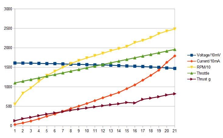 Die schaffen genauso viel Schub, aber an knapp 17A. Und der Motor wird nur warm.